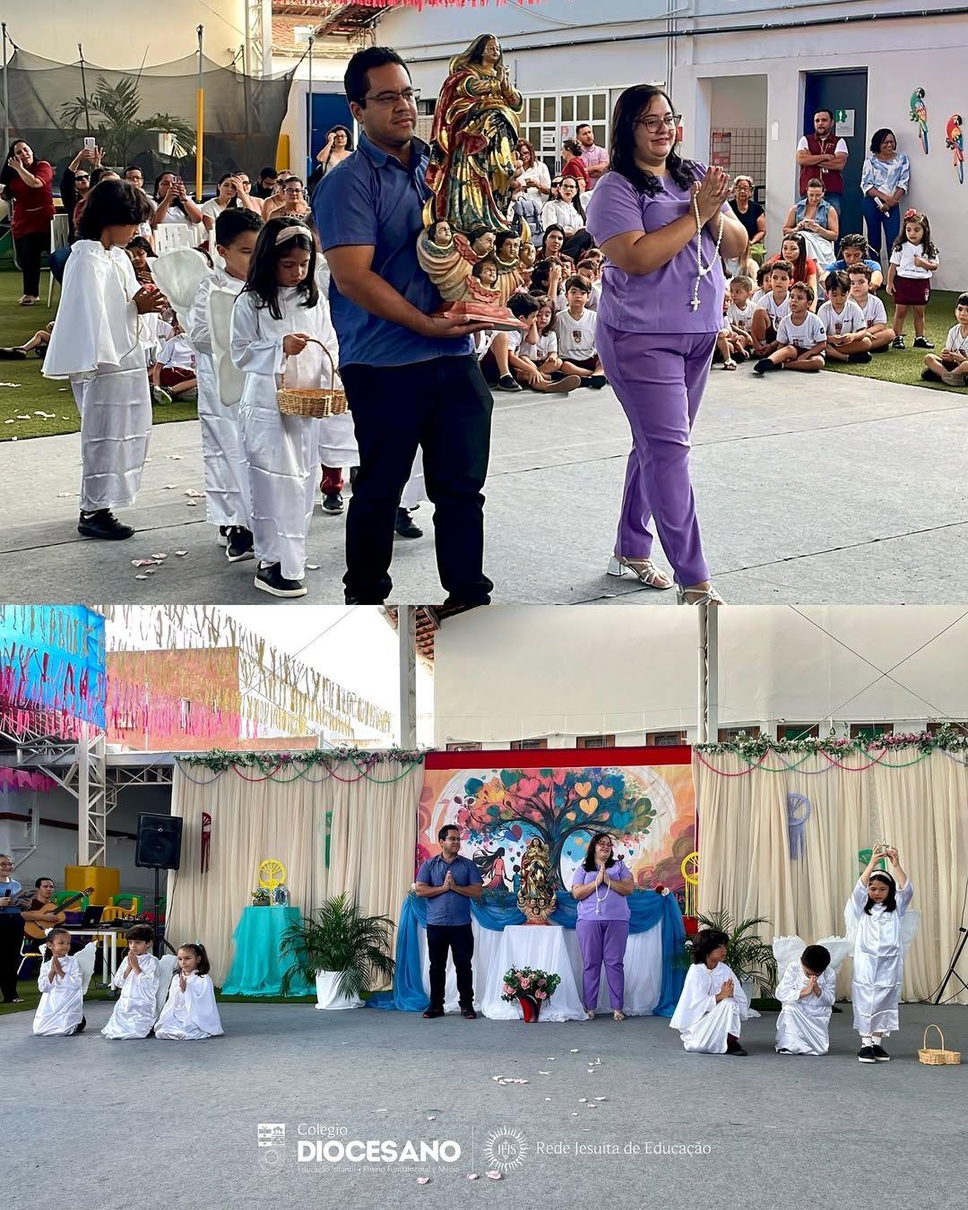 No dia 30 de maio, o Diocesano Infantil viveu um momento especial de fé com a Coroação de Nossa Senhora, encerrando o mês mariano. A celebração reuniu a comunidade escolar em um gesto de devoção, oração e gratidão, no qual cada canto e cada flor ofertada simbolizaram o compromisso com os valores cristãos que orientam a missão educativa do colégio.
