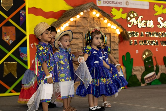 Nos dias 25 e 26 de junho, o Diocesano Infantil realizou o Encontro de Culturas, envolvendo estudantes da Educação Infantil e do 1º ano do Ensino Fundamental. As apresentações artísticas celebraram a cultura sertaneja, valorizando tradições, histórias e expressões populares. O evento proporcionou momentos de encantamento e emoção para as famílias, além de fortalecer o sentimento de pertencimento cultural desde a infância.